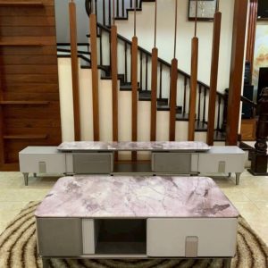 Bàn Sofa Dáng Chữ Nhật Cổ Điển Pha Hiện Đại, Mặt Đá Trắng Vân Mây