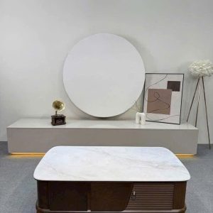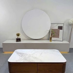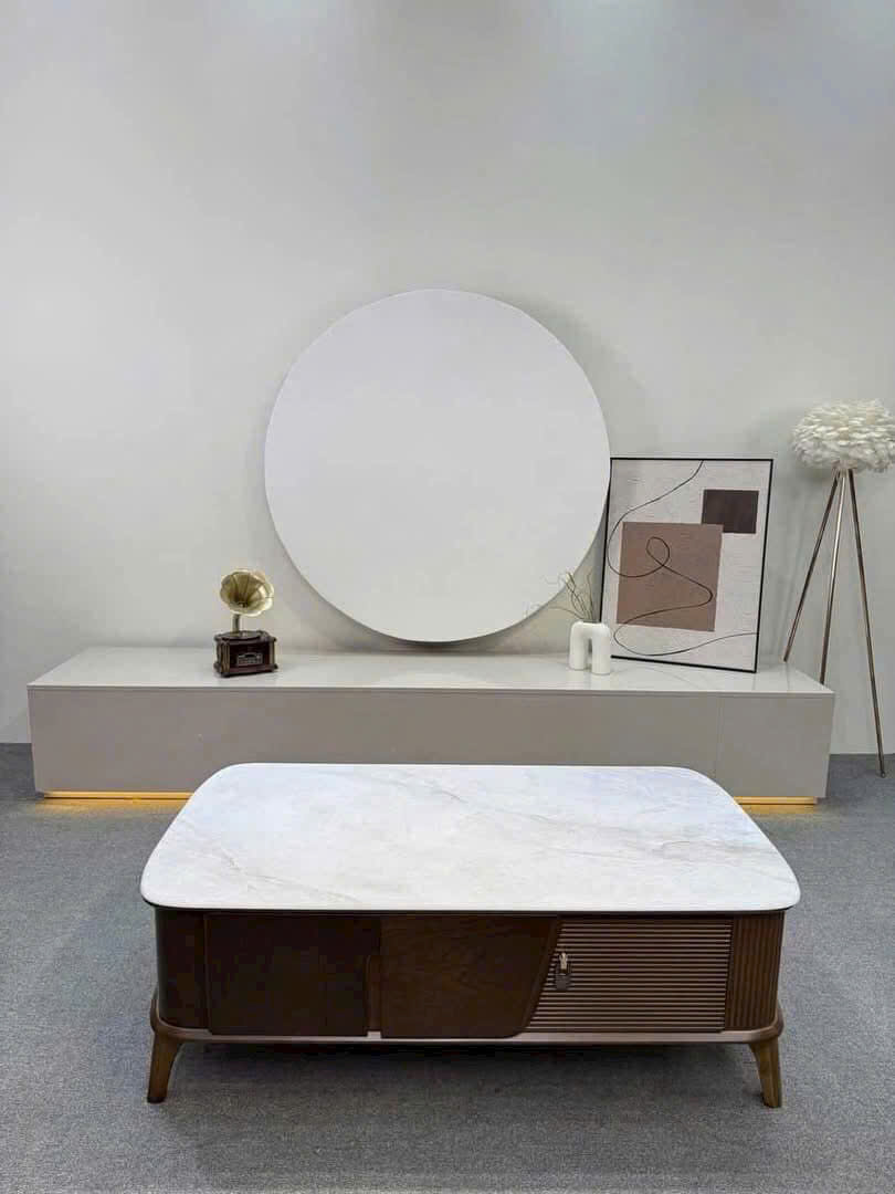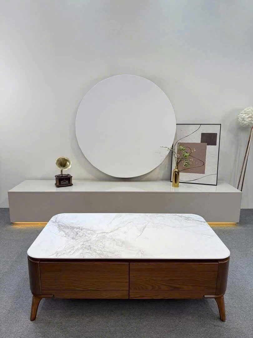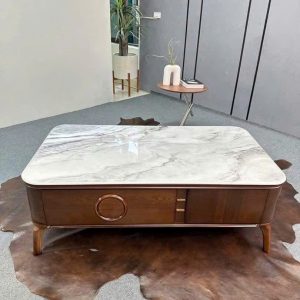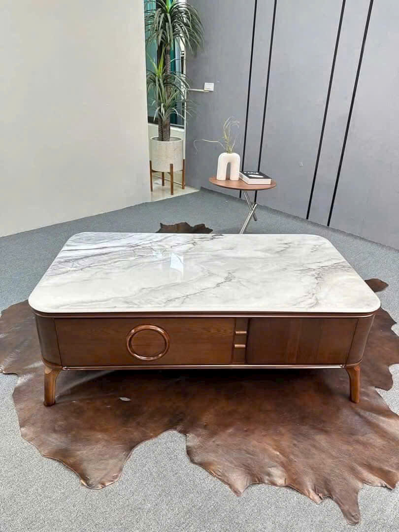 Bàn Sofa Gỗ Cong Mặt Đá Trắng