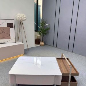 Bàn Sofa Mặt Đá Vuông Ngăn Kéo Ẩn Dạng Tầng Trượt