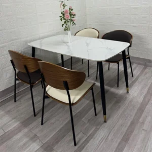 - Chất liệu: Khung ghế Polywood vân gỗ, lưng nệm mút bọc da PU, chân sắt sơn tĩnh điện.