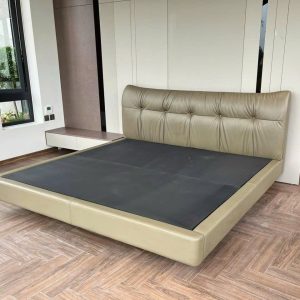 Giường Bọc Da Phẳng Dáng Vuông Màu Be Sáng