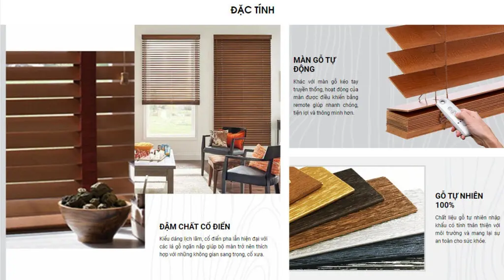 - Đậm chất cổ điển: kiểu dáng lịch lãm, cổ điển pha lẫn hiện đại, với các lá gỗ ngăn nắp, giúp cho bộ màn gỗ trở nên thích hợp với những không gian sang trọng cổ xưa.