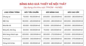 Báo giá thiết kế nội thất TRỌN GÓI đẹp TP Hà Nội năm 2025