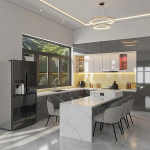 Phòng Khách “Gió Mây Hiện Đại” – Tông Xám Trắng & Đá Vân Mềm