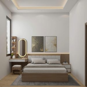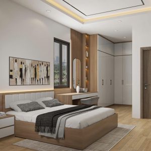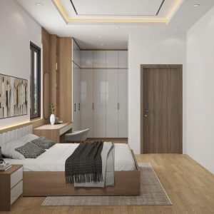 Phòng Ngủ Gỗ Ấm Với Ánh Sáng Nhẹ Tone Trầm Sang