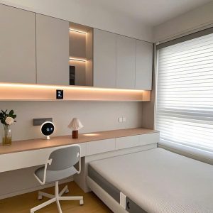 Phòng Ngủ Nhỏ Tone Xám Trắng Tối Giản & Thông Minh