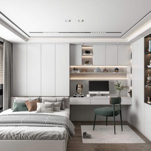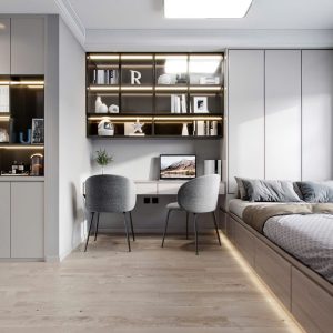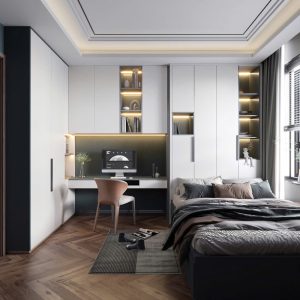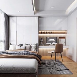 Phòng Ngủ Tối Giản Hiện Đại Với Gỗ Mộc Và Tủ Kịch Trần