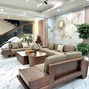 Sofa Gỗ Sồi Bắc Âu – Thiết Kế Đơn Giản, Tông Màu Nâu Sáng Hiện Đại