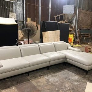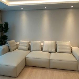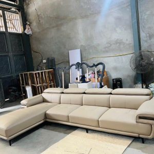 Sofa góc L bọc da cao cấp – Xám kem sang trọng