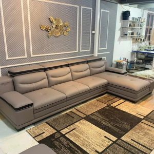 Sofa góc L bọc da cao cấp – Xám kem sang trọng