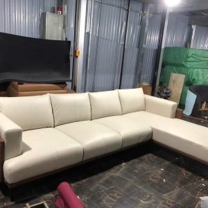Sofa L Bọc Da – Gối Tựa Tách Rời – Chân Sắt