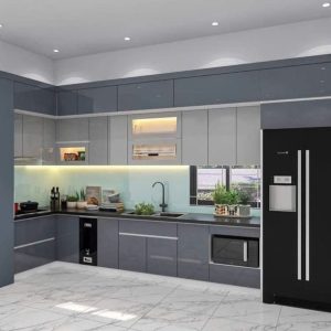 Tủ Bếp Chữ L Cao Cấp Kết hợp Tủ Cao Full Trần