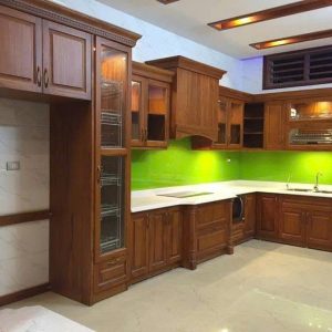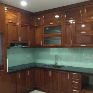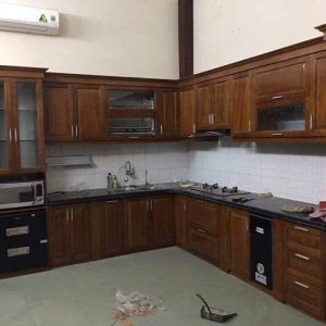 Tủ Bếp Gỗ Xoan Đào Góc L, Sơn Cánh Gián Sang Trọng