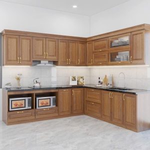 Tủ Bếp Gỗ Tự Nhiên Chữ L, Cao Kịch Trần