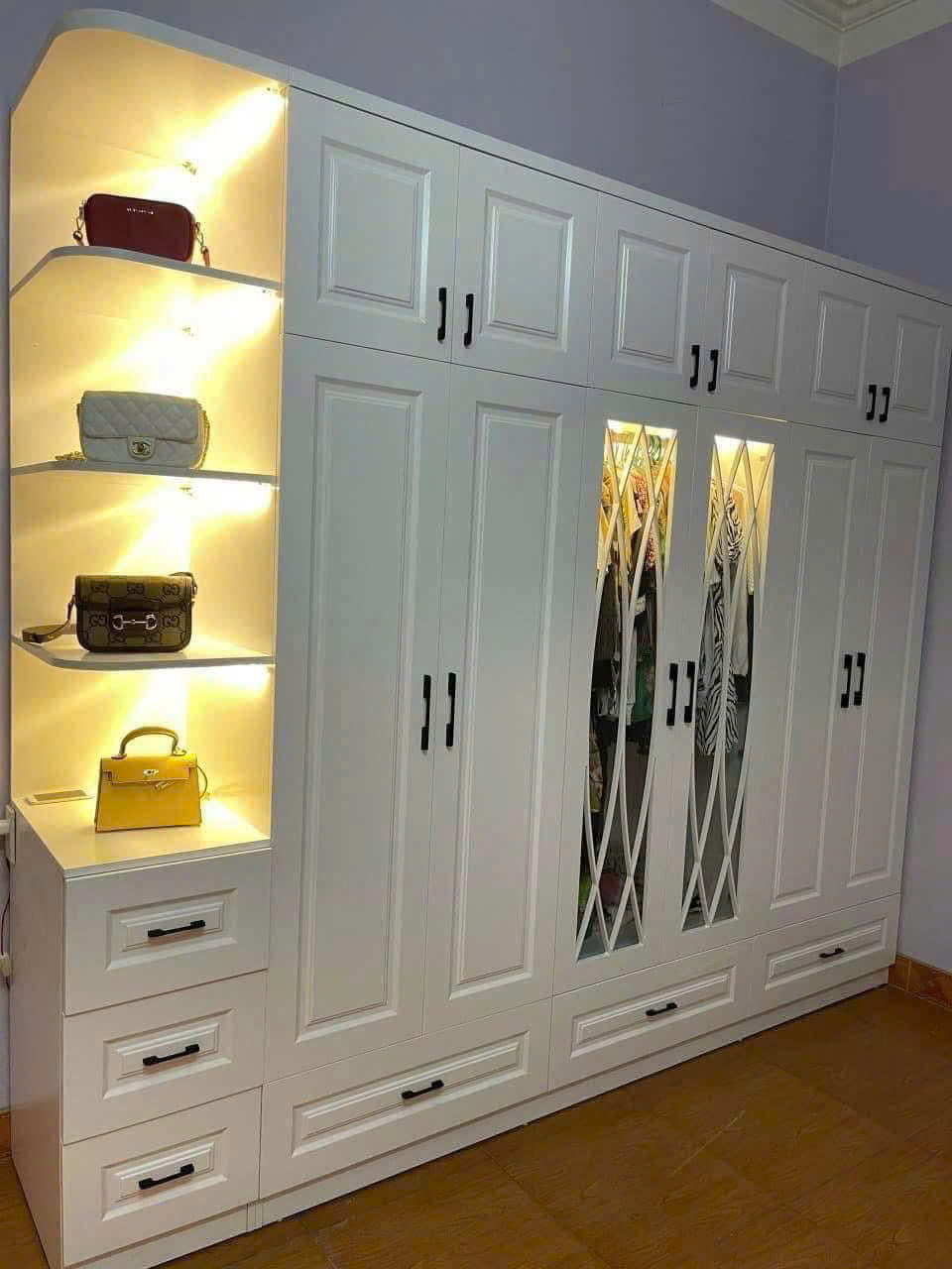 Tủ Quần Áo Gỗ MDF Sơn PU & Kệ Trưng Bày Cao Cấp