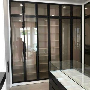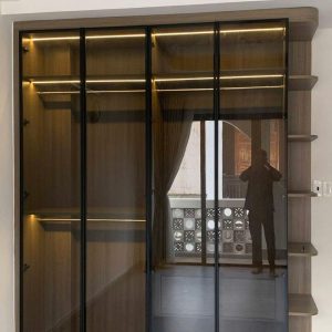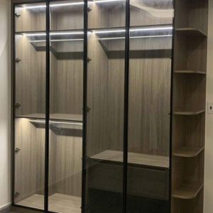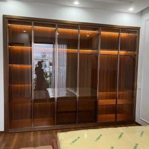 Tủ Quần Áo Kịch Trần Cửa Kính Khung Nhôm Dáng Thẳng Lắp LED Toàn Bộ