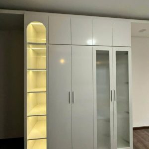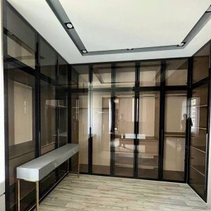 Tủ Quần Áo Kính Cường Lực Khung Nhôm Dáng Chữ U Âm Tường Cao Kịch Trần