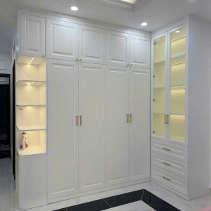 Tủ Quần Áo Góc Chữ L Cổ Điển Trắng Tinh Khôi Sơn PU Cao Cấp