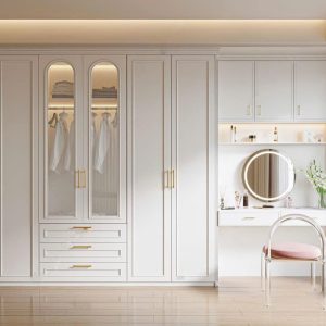 Tủ Quần Áo Gỗ MDF Chạy Chỉ Âm & Hệ Kệ Trang Trí Tích Hợp