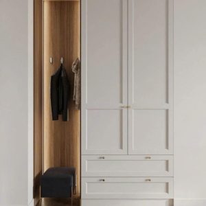 Tủ Quần Áo Gỗ MDF Sơn Trắng Cổ Điển & Góc Treo Áo Gỗ Sồi Tự Nhiên