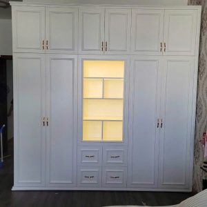 Tủ Quần Áo Gỗ MDF Kết Hợp Kệ Trang Trí LED Trung Tâm
